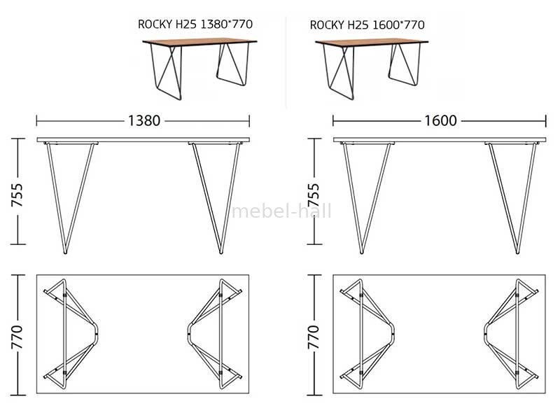 Стол обеденный для дома или офиса ROCKY H25 1380x770 ножки металлические цвет alu столешница ДСП