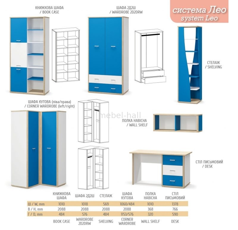 Детская мебель Лео Мебель Сервис сочетает в себе множество модулей, которые позволят удобно оформить комнату Вашего ребенка.
