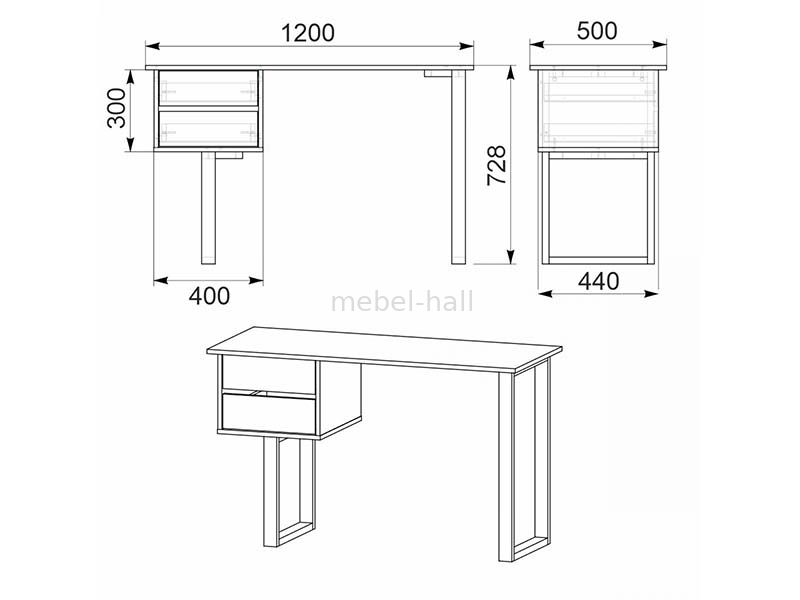 Письменный стол с 2 шухлядами без ручек ЛОФТ-3 Компанит