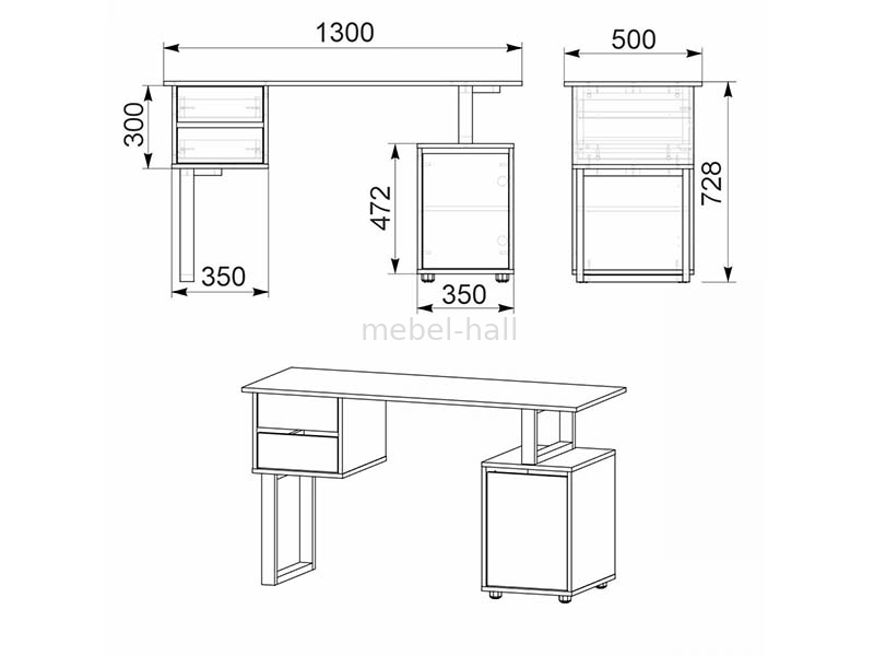 Письменный стол с 2 тумбами без ручек ЛОФТ-4 Компанит
