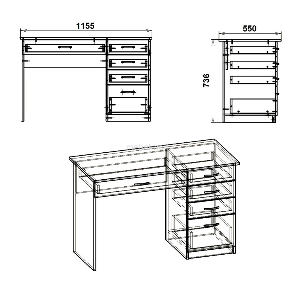 Письменный стол - это обязательный предмет мебели и для ребенка, и для взрослого. Дошкольнику стол необходим для обучения азам грамоты, рисования, лепки из пластилина и других занятий по развитию моторики. Школьник пользуется письменным столом на протяжении 11 лет обучения. В ящиках стола должны размещаться учебники и тетради, альбомы и принадлежности для творчества. Для старшеклассников и студентов, возможно, письменный стол уступит место в комнате компьютерному. В любом случае, ассортимент моделей в различных цветах ламинированного ДСП позволит купить письменный стол, который наилучшим образом подходит для Вашего интерьера.