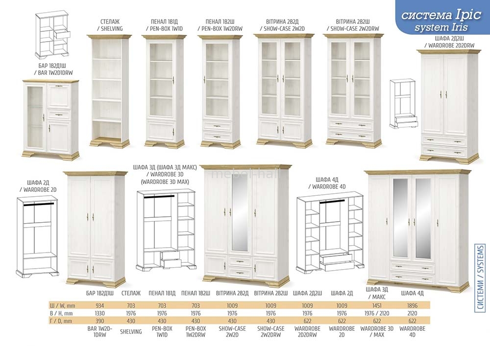 Мебель Ирис включает в себя большое количество идеально гармонирующих друг с другом модулей для создания идеального интерьера спальни.