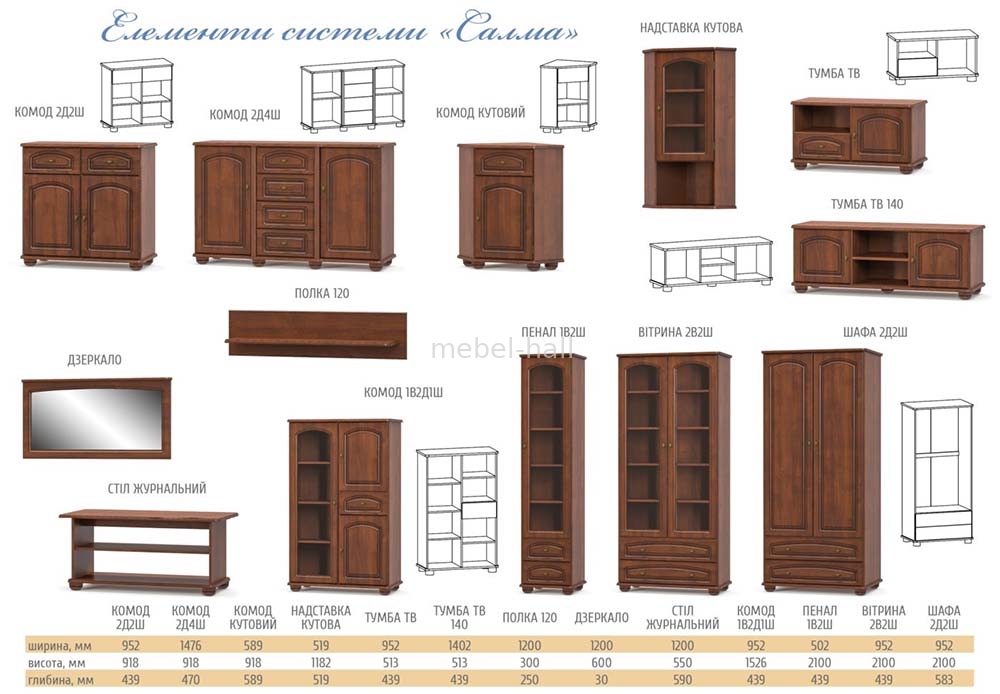 Мебель Салма включает в себя большое количество идеально гармонирующих друг с другом модулей для создания идеального интерьера гостиной.
