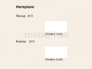 Фасад и корпус выполнен из ламинированного ДСП в цвете Нимфея Альба.
