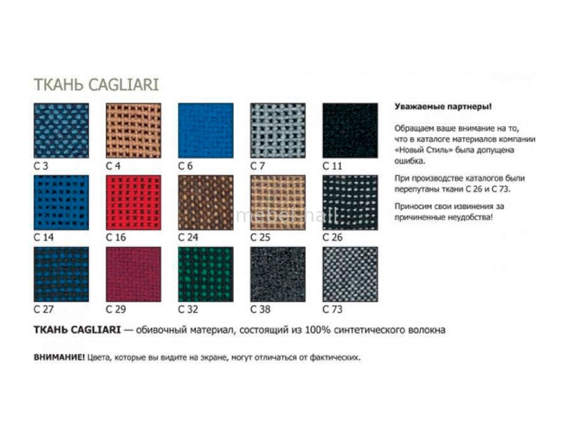 - Обивка: ткань Сagliari материал, состоящий из 100% синтетического волокна