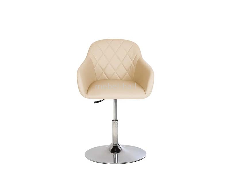 Стильный дизайн стула с мягким эргономическим сиденьем. Это обеспечивает максимальный комфорт при сидении. Долговечность стула определяется прочной конструкцией, размещен на прочном металлическом блине, который изготавливается из хромированной стали. Сиденье оборачивается вокруг своей оси. Регулировка высоты кресла осуществляется с помощью пневматического механизма (газлифт).