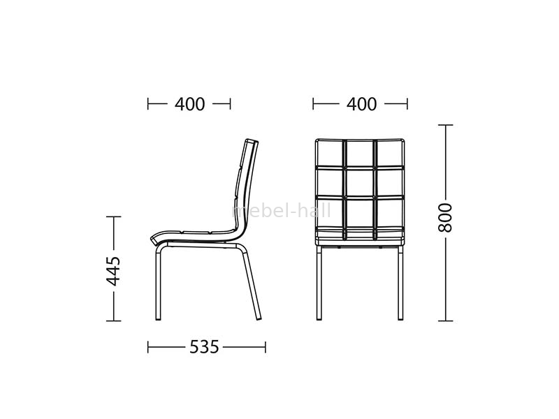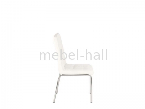 Современный дизайн стула с цельной спинкой и сиденьем, мягкие, обитые тканью, с прошивкой квадраты. Это обеспечивает максимальный комфорт при сидении. Долговечность стула определяется прочной конструкцией, изготовлен на сварном металлическом каркасе. База выполнена из металла, покрытого хромом. На ножках предусмотрены специальные заглушки, которые защищают поверхность пола от повреждений.