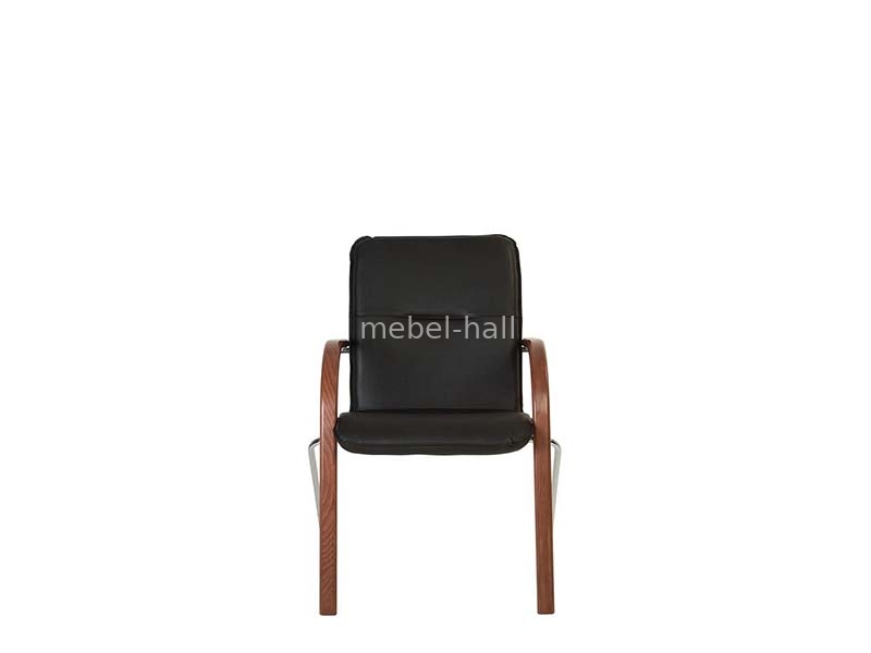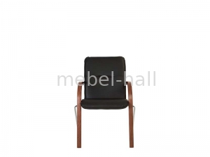 Это практичное решение для офиса по выгодной цене. Долговечность стула определяется прочной конструкцией изготовлен на сварном металлическом каркасе. В данной модификации стул изготавливается на хромированной раме. Подлокотники, плавно переходящие в ножки, деревянные.