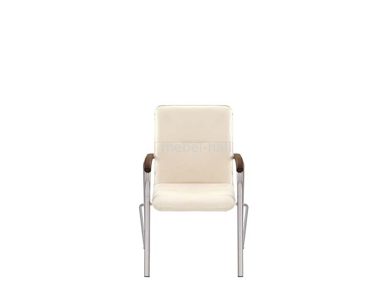 Это практичное решение для офиса по выгодной цене. Долговечность стула определяется прочной конструкцией изготовлен на сварном металлическом каркасе. В данной модификации стул изготавливается на хромированной раме. На подлокотниках деревянные накладки.