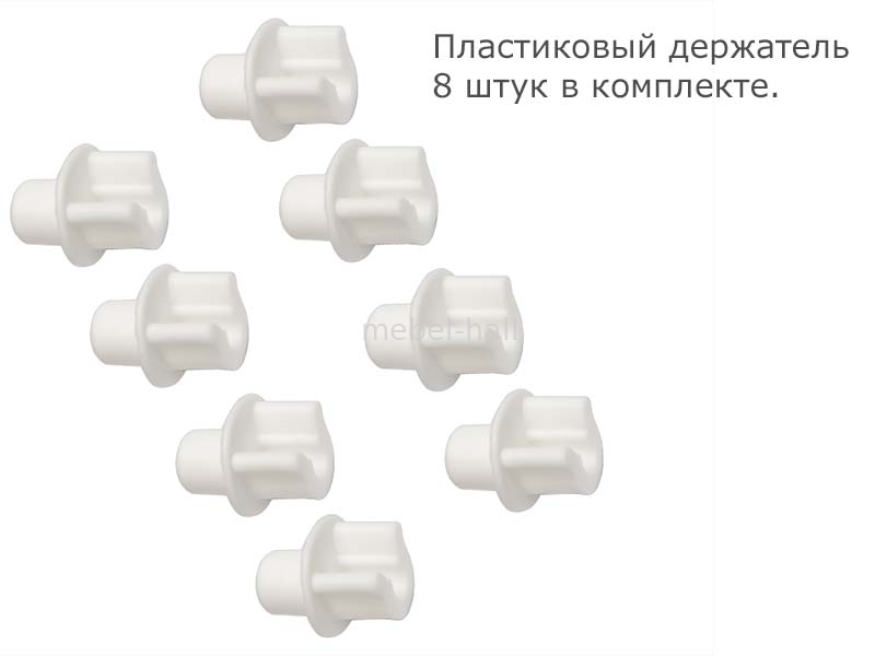 Комплект сушки включает 2 яруса для хранения посуды, один поддон, 8 пластиковых белых держателя нижнего и верхнего уровней.