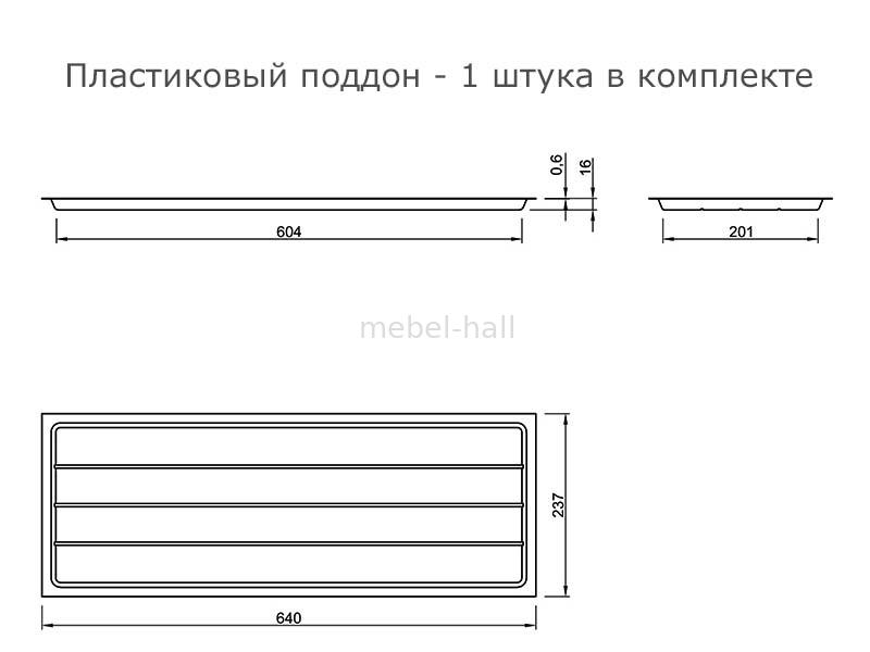 Размер пластиковых поддонов рассчитан под мебельные модули, которые предполагают использование плиты 16 мм.