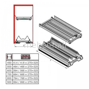 Двухуровневая и вместительная проволочная сушка в верхнюю базу Рейс Вариант 3 надёжно устанавливается в короб без дна за счёт специальных алюминиевых трубок с пазом под крепление задней стенки мебельного короба. Сушка хром Рейс Вариант 3 представлена в широком диапазоне длин: от 400 до 900 мм. Каждый ярус сушки рассчитан на грузоподъёмность 12 кг.