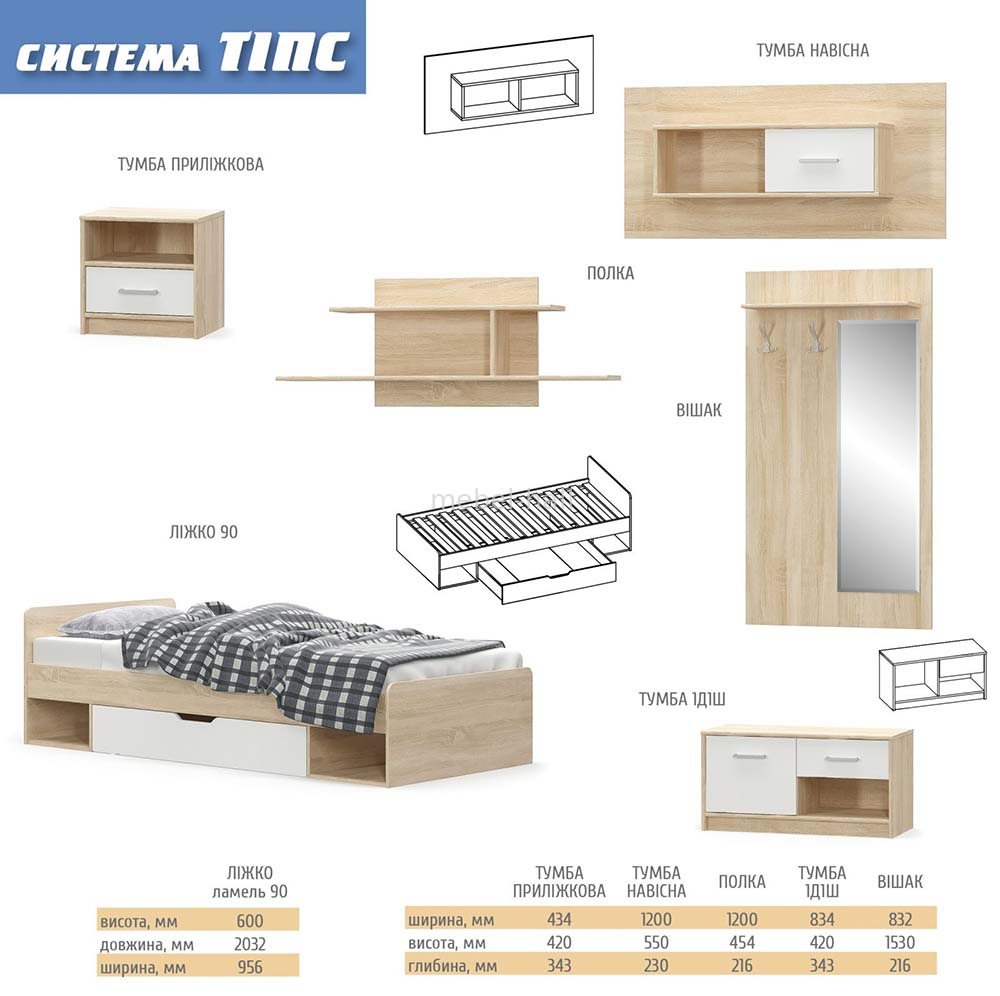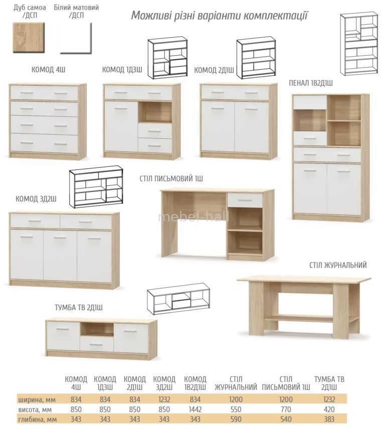 Тумба ТВ 2Д1Ш Типс от украинской мебельной фабрики Мебель Сервис - стильная, функциональная, компактная. Выпускается в эффектном сочетании модных натуральных цветов. Такое сочетание цветов зрительно расширяют пространство. В качестве декора используются плоские металлические ручки. Модель оснащена выдвижным ящиком на направляющих полного выдвижения, что гарантирует плавность при выдвижении и долговечность.