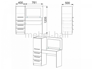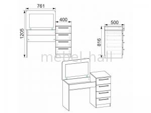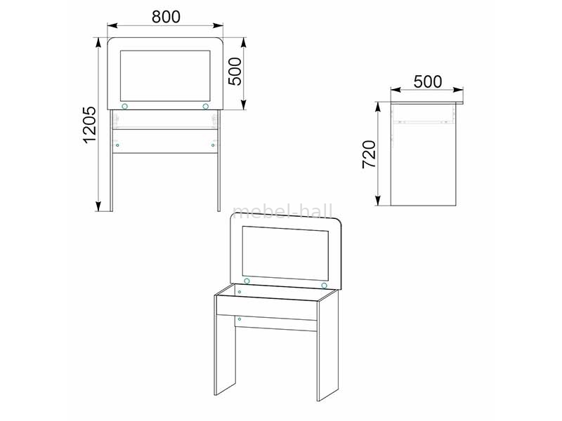 | Тип туалетного столика: | Трюмо (одно зеркало) |