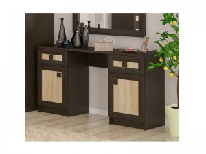 Туалетный столик (туалетка, без зеркала) Даллас с двумя шухлядами и двумя дверьми от украинской фабрики "Мебель-Сервис". Современный туалетный столик с оригинальным решением фасадов с накладками из МДФ. Направляющие на ящиках телескопические, что гарантирует плавность при выдвижении и долговечность.