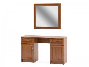 Туалетный столик (туалетка, без зеркала) Даллас с двумя шухлядами и двумя дверьми от украинской фабрики "Мебель-Сервис". Современный туалетный столик с оригинальным решением фасадов с накладками из МДФ. Направляющие на ящиках телескопические, что гарантирует плавность при выдвижении и долговечность.