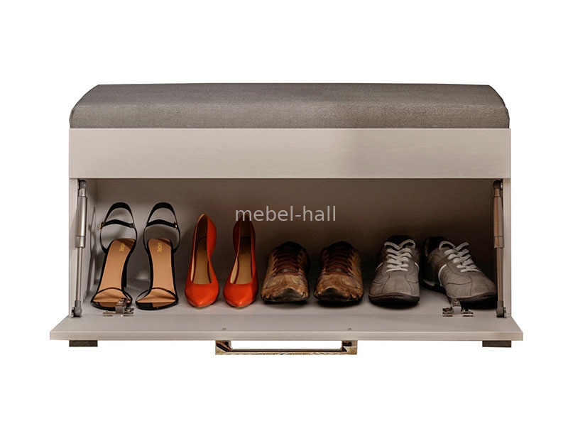 Тумба для обуви 1 дверь с мягким сиденьем Аманда MiroMark ДСП Глянец Белый / Белый 90 см