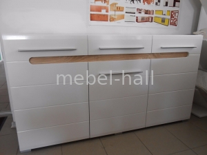 Тумба 3Д БЬЯНКО Світ Меблів стильная, воплощающая в себе всю красоту и сдержанность простых линий и форм. Выпускается в эффектном сочетании цветов: корпус белый, фасад белый глянец с контрастными вставками дуб сонома. В качестве декора используются длинные металлические ручки цвета «алюминий». Сияющие белоснежные глянцевые фасады, визуально разделенные на блоки, зрительно расширяют пространство. Модель оснащена двумя дверьми и небольшим выдвижным ящиком на направляющих полного выдвижения. Тумба 3Д БЬЯНКО украсит самый изысканный интерьер.