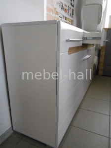 Фасад выполнен из МДФ в цвете Белый Глянец + вставки ДСП в цвете Дуб Сонома.
