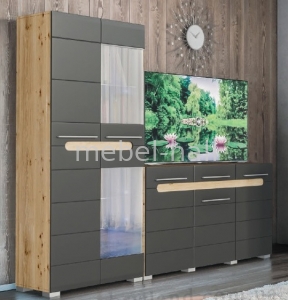 Фасад выполнен из МДФ в цвете Графит + вставки ДСП в цвете Дуб Артизан.