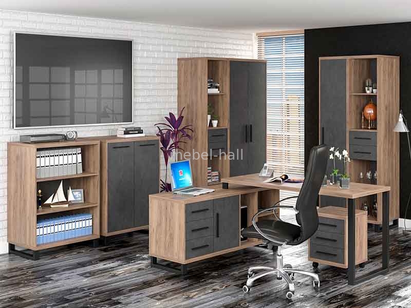 Тумба 3Ш Омега от украинской мебельной фабрики Мебель Сервис - мебель для офиса, которая выполнена в современном стиле лофт. Брутальная мебель из качественных современных материалов с черными металлическими ножками. Модуль изготавливается в сочетании натуральных темных тонов. В качестве декора используются оригинальные, металлические, продолговатые ручки. Модель оснащена выдвижными ящиками на направляющих полного выдвижения, что гарантирует плавность при выдвижении и долговечность.