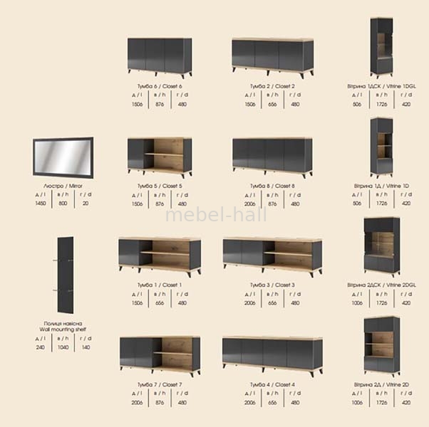 Тумба 6 ТРЕВИЗО Світ Меблів - стильная современная, воплощающая в себе всю красоту и сдержанность простых линий и форм. Выпускается в эффектном сочетании натуральных цветов антрацит глянец и дуб артизан, что придаст Вашей гостиной простора и свежести. В качестве декора используются высокие деревянные ножки.
