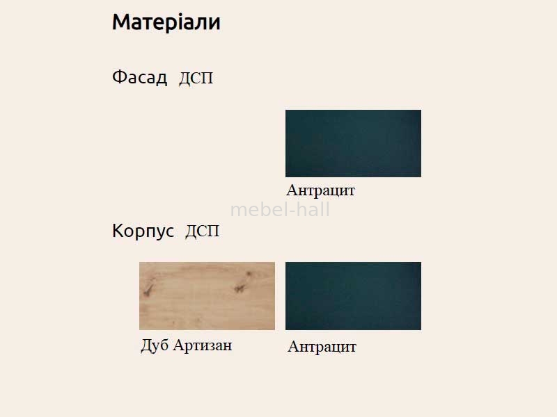 Корпус выполнен из ламинированного ДСП в цвете Дуб Артизан / Антрацит.