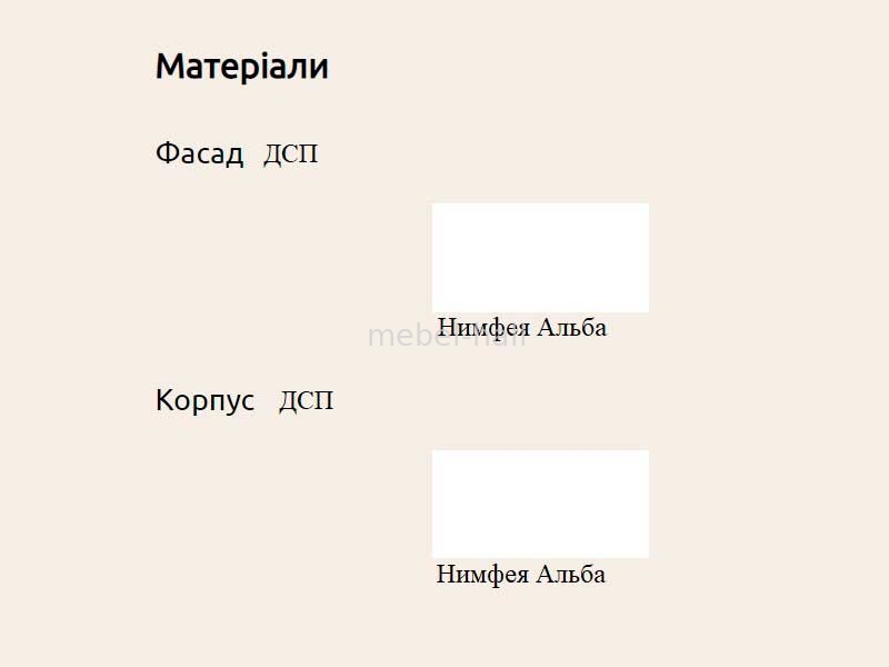 Фасад и корпус выполнен из ламинированного ДСП в цвете Нимфея Альба.