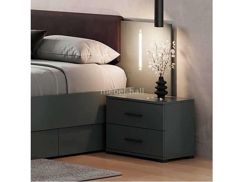 Мебель выполнена в урбанистическом стиле от украинской мебельной фабрики MiroMark. Современный дизайн, экстравагантный графитовый цвет, пластмассовые черные матовые ручки, помогут оформить стильный интерьер спальной комнаты.
