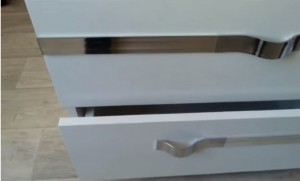 Фасад отлакированный, выполнен из ламинированного ДСП в Белом цвете + Хромированные накладки.