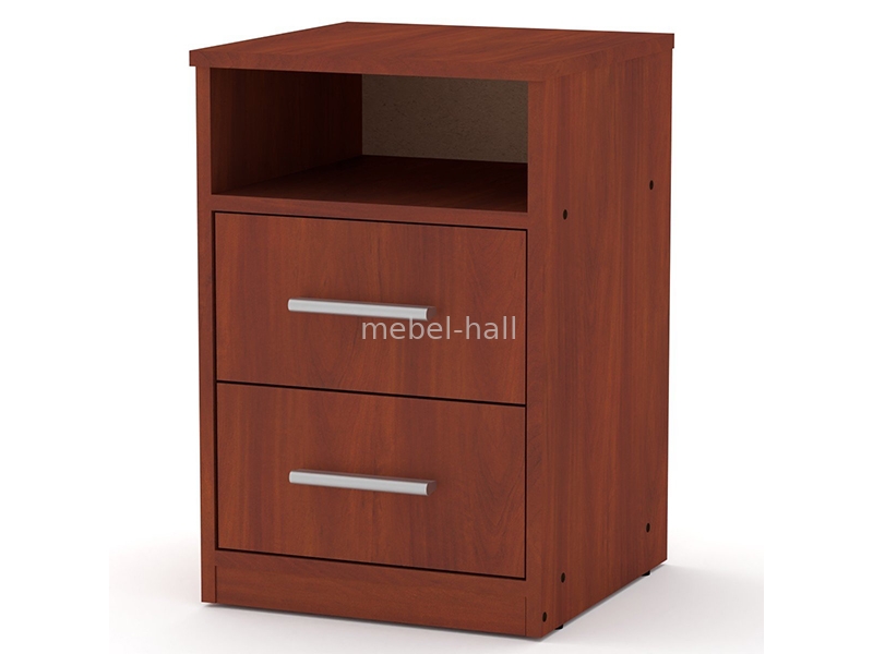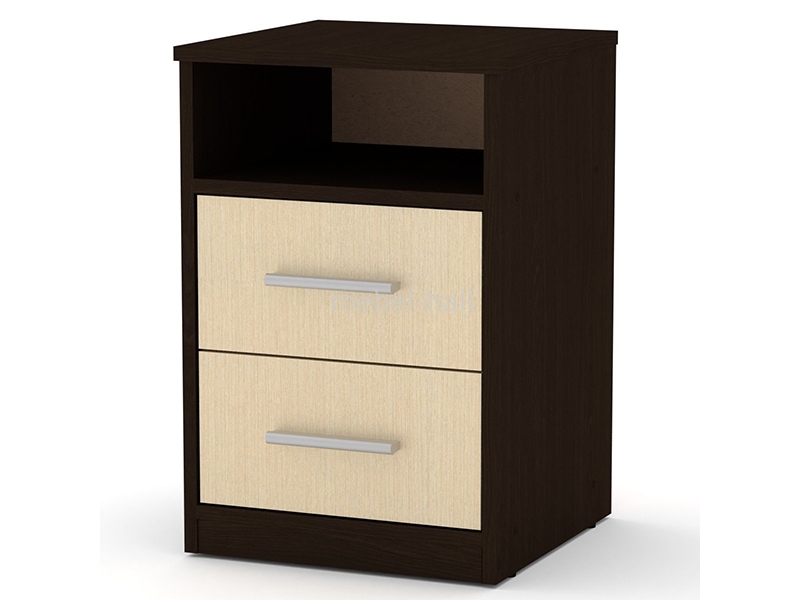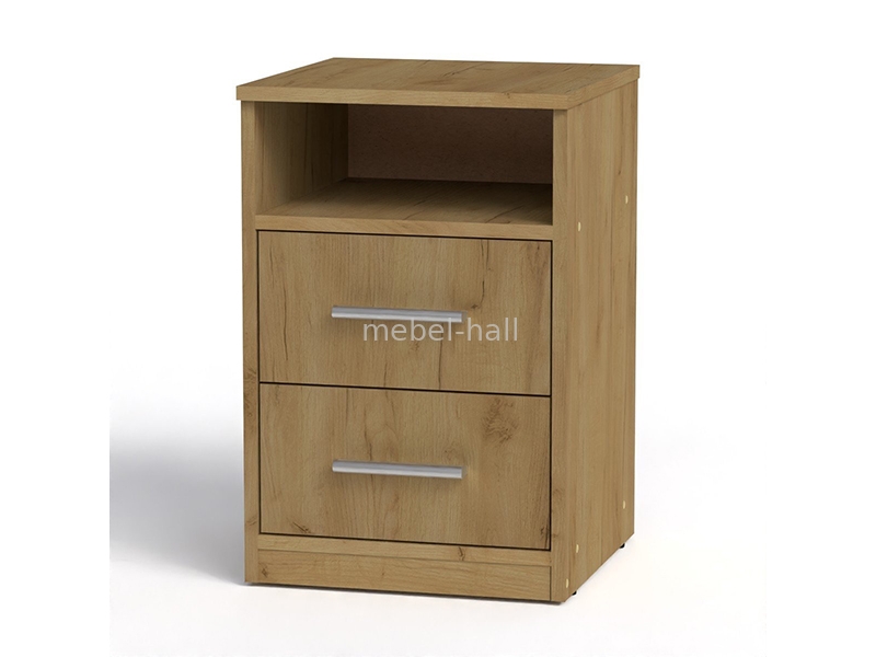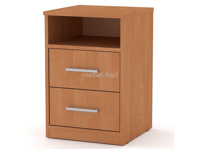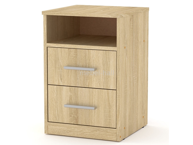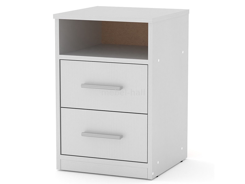 Тумба прикроватная с открытой полкой и двумя выдвижными ящиками на роликовых направляющих.