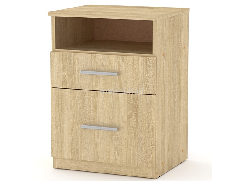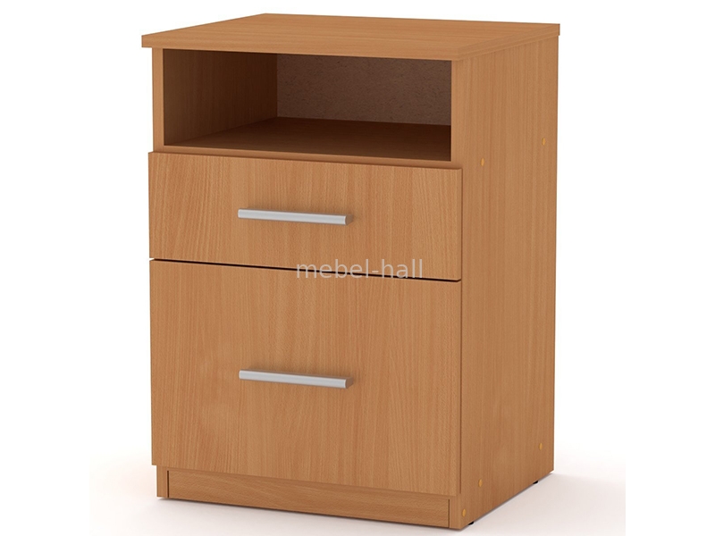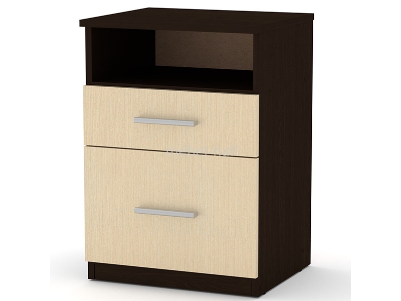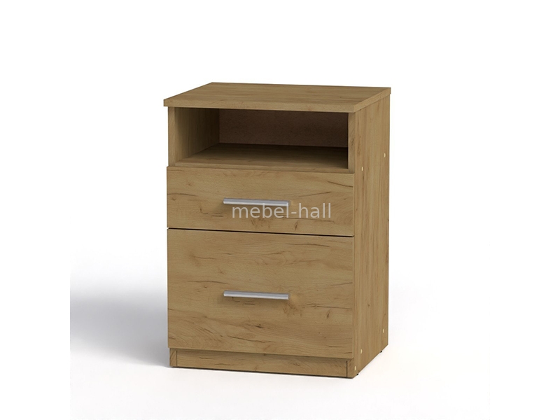 Тумба прикроватная увеличенного размера с открытой полкой и 2 выдвижными ящиками на роликовых направляющих.