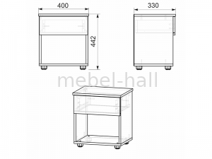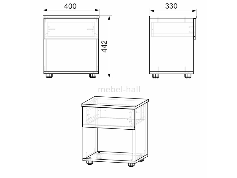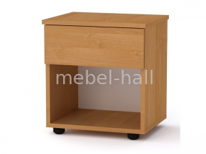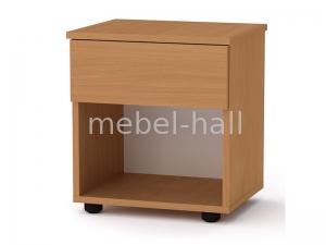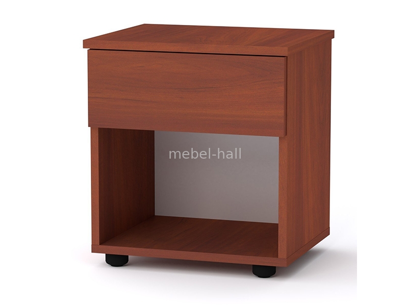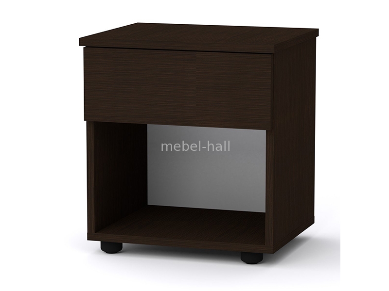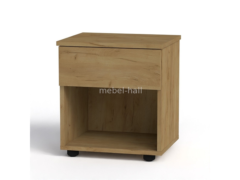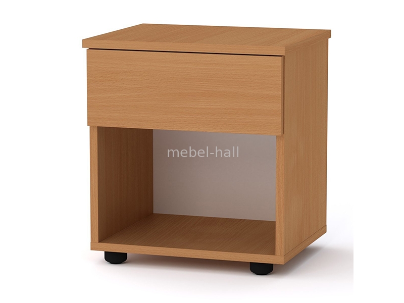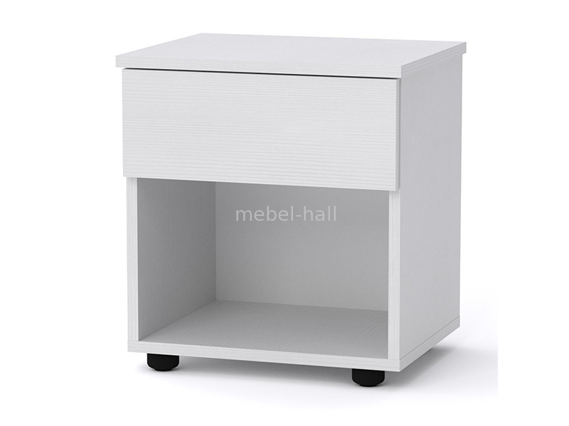 Тумба прикроватная с открытой полкой и выдвижным ящиком на роликовых направляющих.
