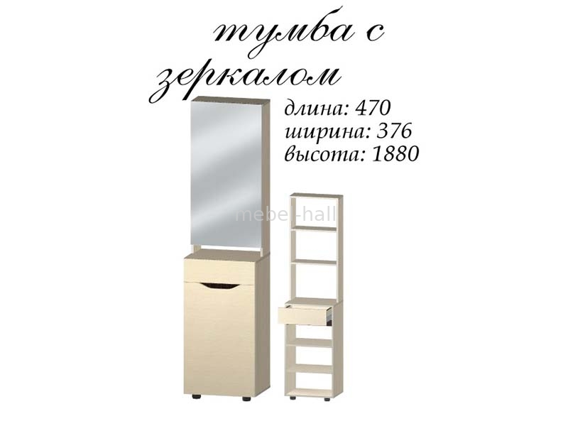 Тумба с зеркалом и выдвижным ящиком для прихожей Аякс Мастер Форм 47х37,6х188 см