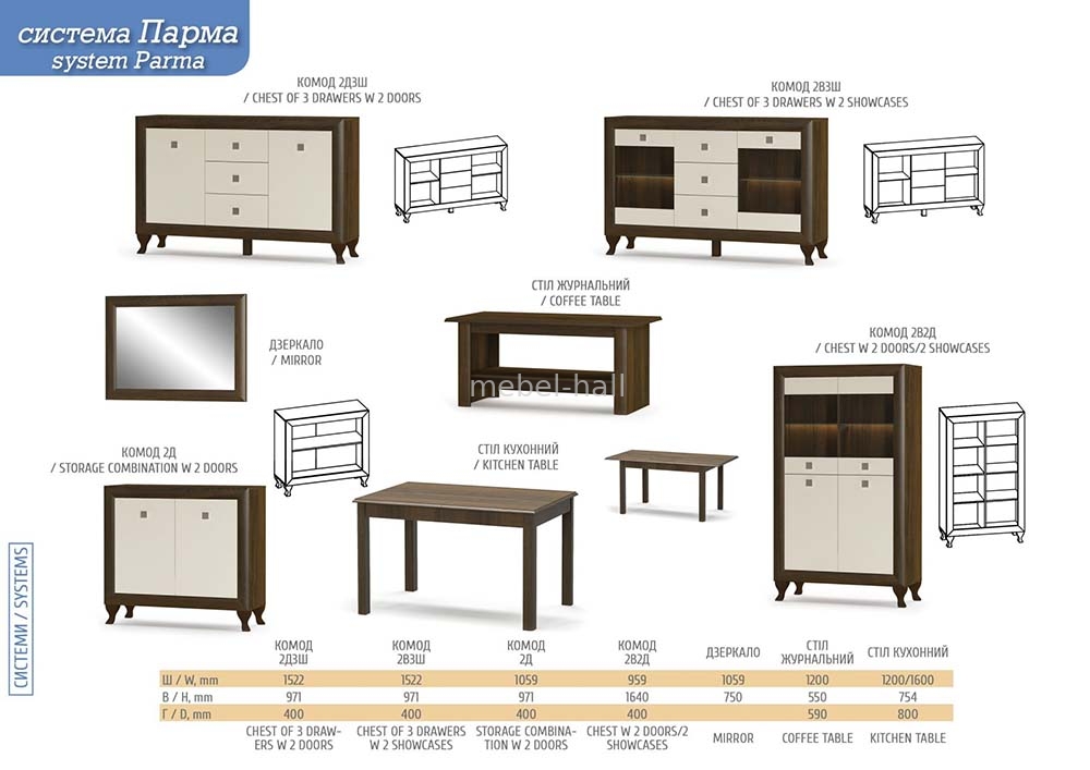 Мебель Парма включает в себя большое количество идеально гармонирующих друг с другом модулей для создания идеального интерьера гостиной.