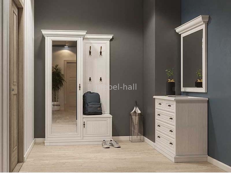 Фасад выполнен из ламинированного ДСП с рамочным профилем из МДФ в цвете Сосна водевиль.
