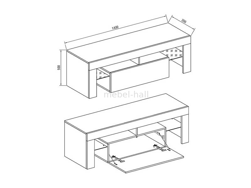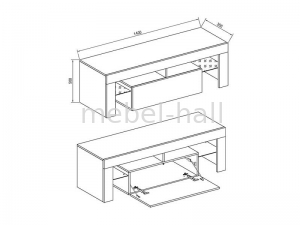 ТВ тумба Моника от украинской фабрики Світ Меблів. Практичность, минимализм и оригинальность, вот основные характеристики изделия. Впишется в небольшую гостиную.