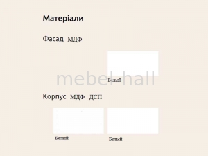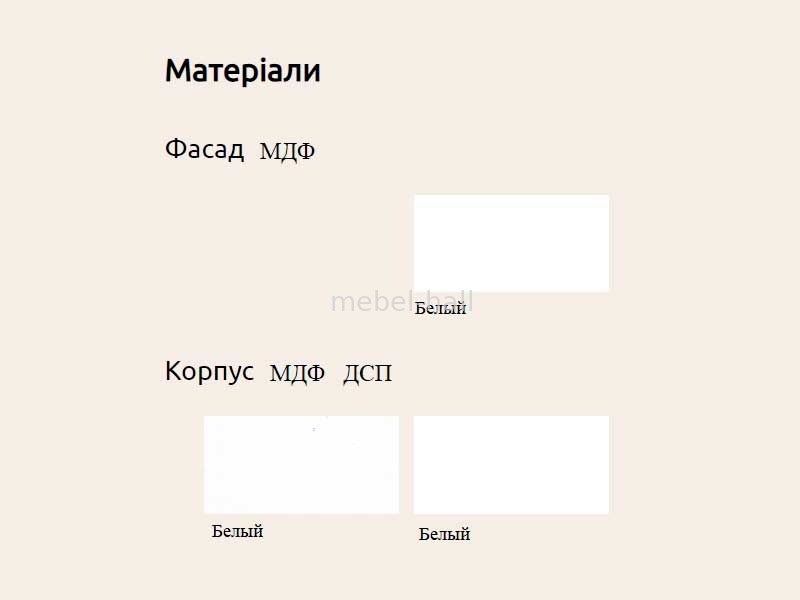 Корпус - МДФ, Белый, ламинированное ДСП, Белый.