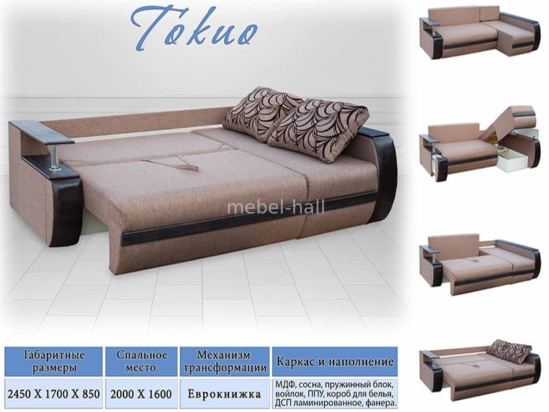 Раскладной угловой диван Токио-2 с большим спальным местом 1,6*2,0 метра
