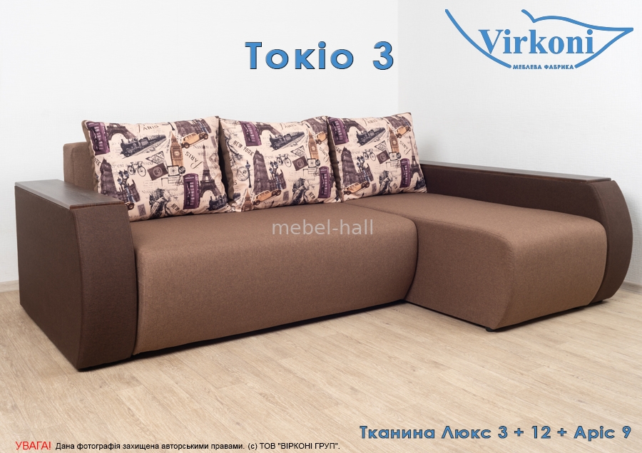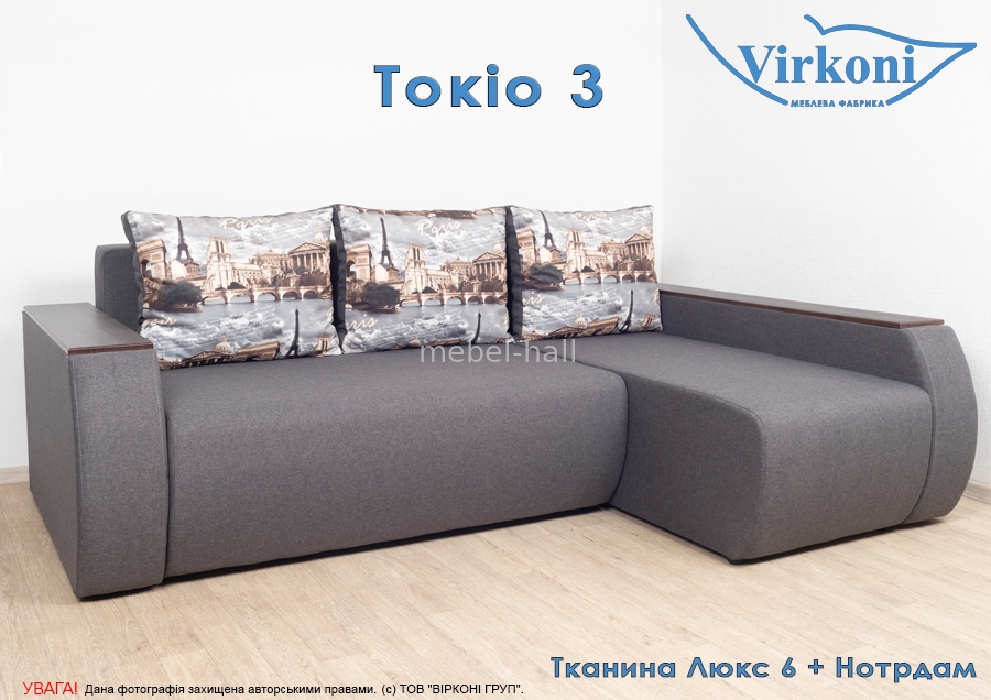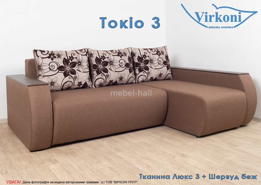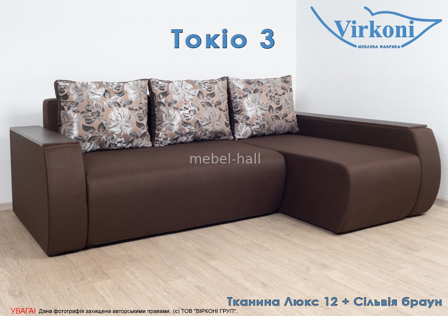Угловой раскладной диван еврокнижка в гостиную "Токио-3" ,модель с дополнительными нишами в подлокотниках.