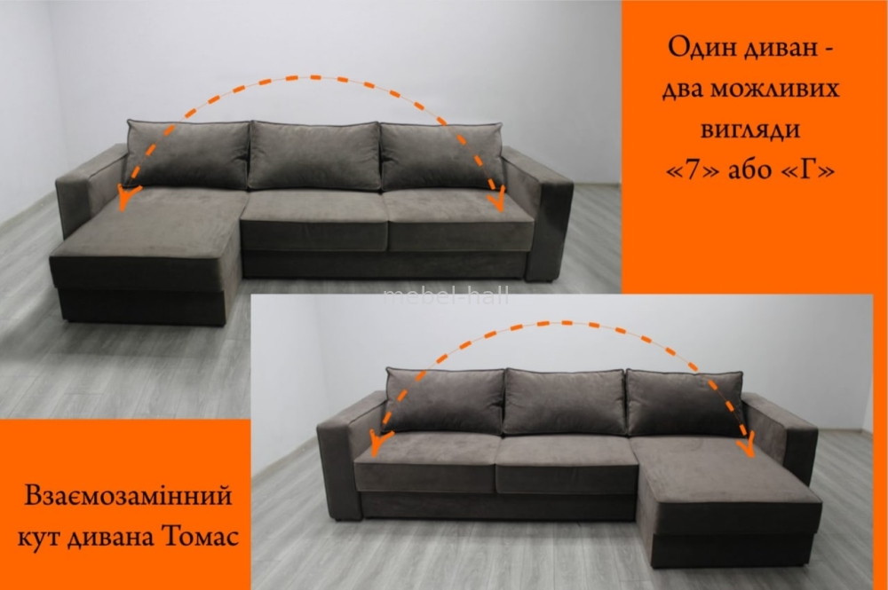 Диван универсальный, а это значит, что его можно ставить и в левый, и в правый угол!