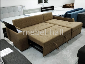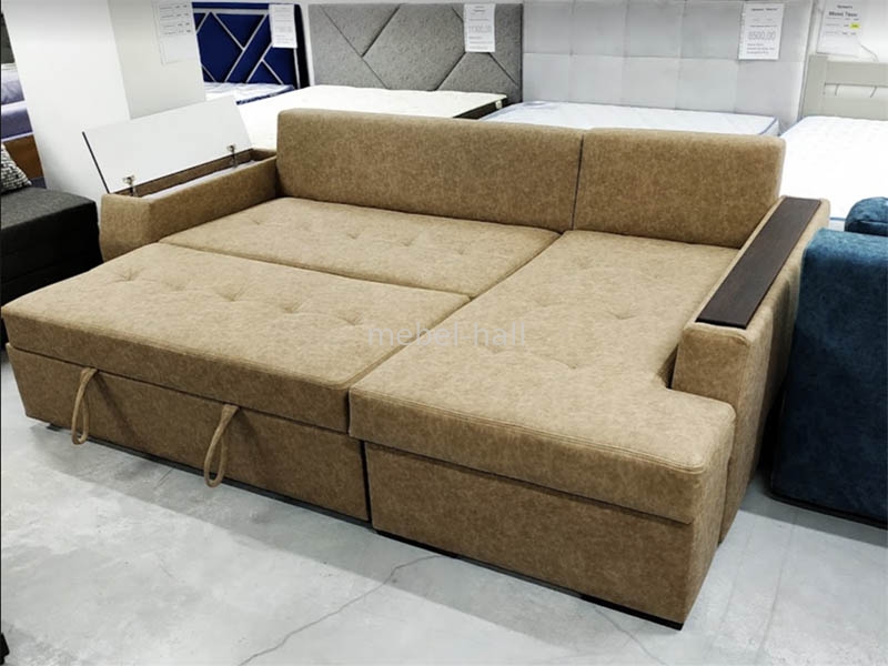 Есть ниша в широком подлокотнике и большая ниша в угловой секции.