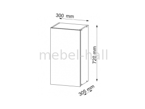 Закрытый верхний шкафчик В30 для кухни Софт Сокме, с одной дверью и полкой внутри.