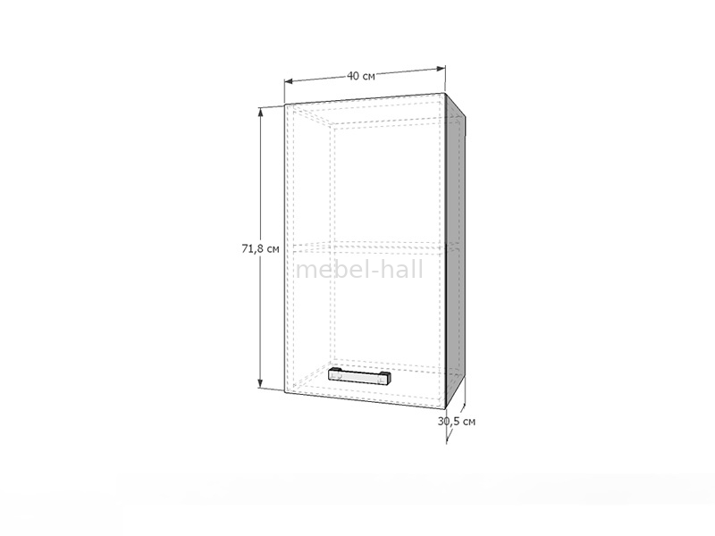 Закрытый верхний шкафчик В40 для кухни Алина Сокме, с одной дверью и полкой внутри.