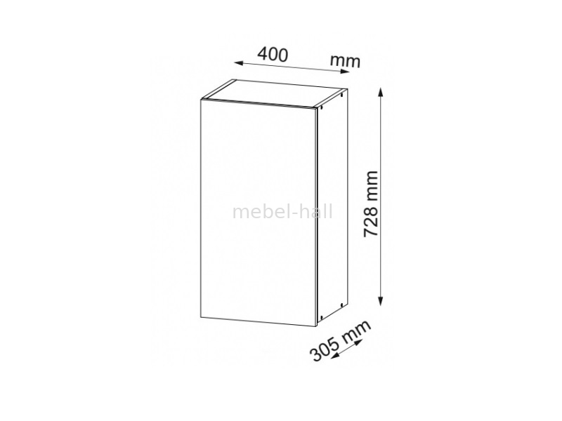 Закрытый верхний шкафчик В40 для кухни Софт Сокме, с одной дверью и полкой внутри.
