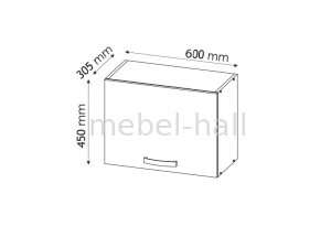 Закрытый верхний шкафчик В60 450 для кухни Шарлотта с дверцей, открывающейся вверх и полкой внутри.