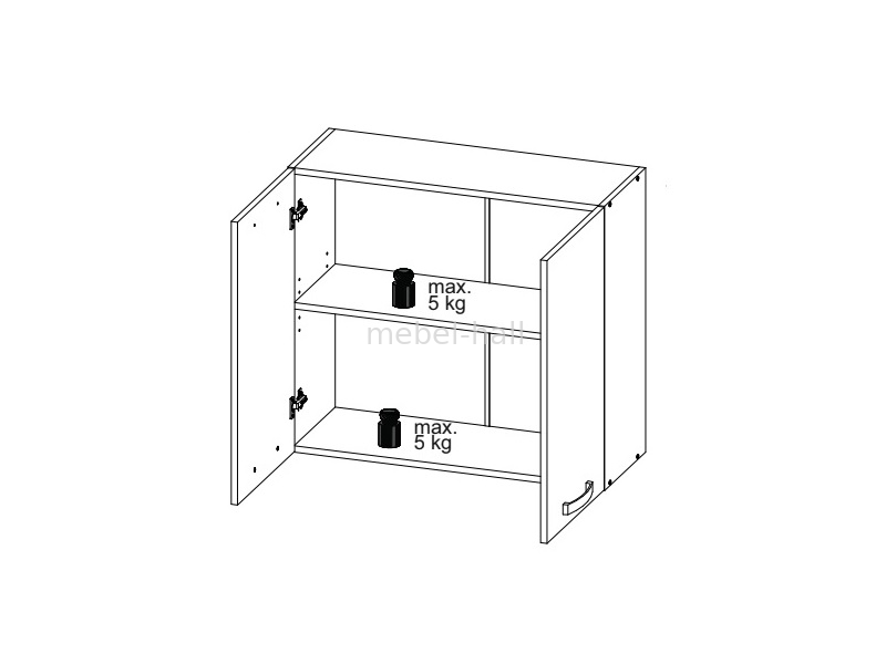 Закрытая верхняя секция в виде шкафчика с двумя дверцами В60 кухни Шарлотта с полкой.