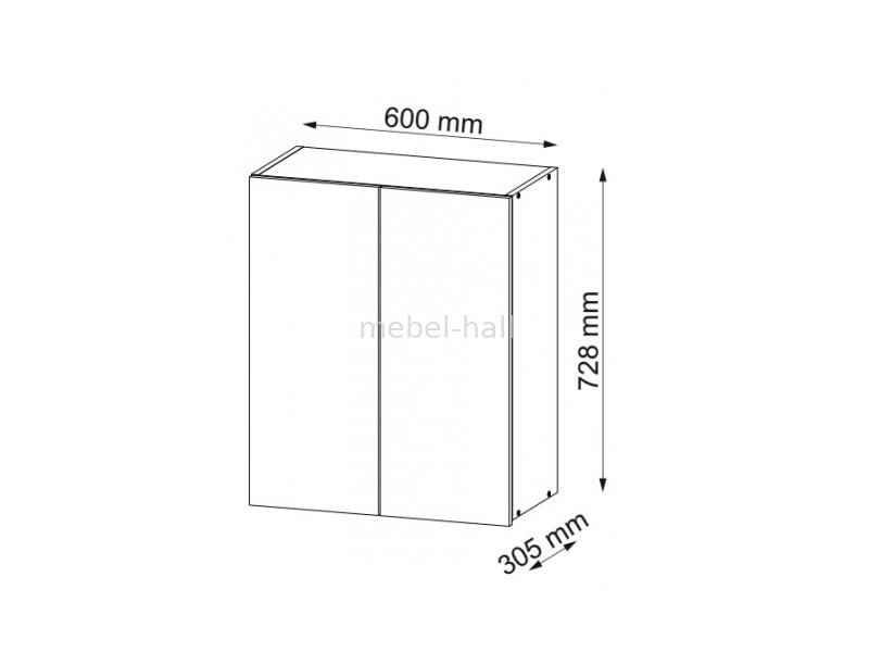 Закрытый верхний шкафчик В60 для кухни Софт Сокме, с двумя дверьми и полкой внутри.