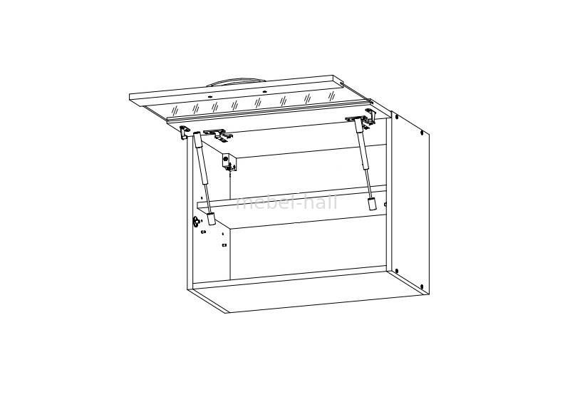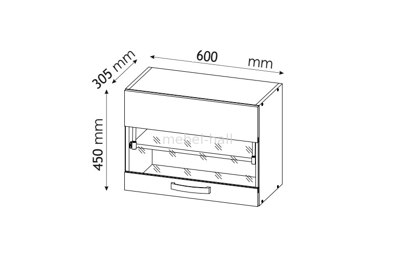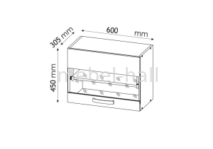 Закрытый верхний шкафчик В60 витрина 450 для кухни Шарлотта с дверцей с прозрачным стеклом, открывающейся вверх и полкой внутри.