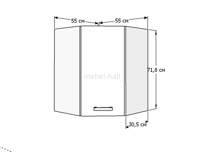 Закрытый угловой верхний шкафчик В60х60 для кухни Алина Сокме, с одной дверью и полкой внутри.